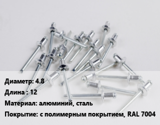 Заклепка 4.8х12 алюминий, сталь с полимерным покрытием, RAL 7004, упаковка 500 шт, вытяжная, комбинированная цена от 425.21 Тг / шт, где купить, условия доставки в Алматы и Алматинской области