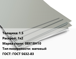 Лист нержавеющий 1.5 1х2 Сталь: 08Х18Н10 Тип:матовый ГОСТ 5632-83